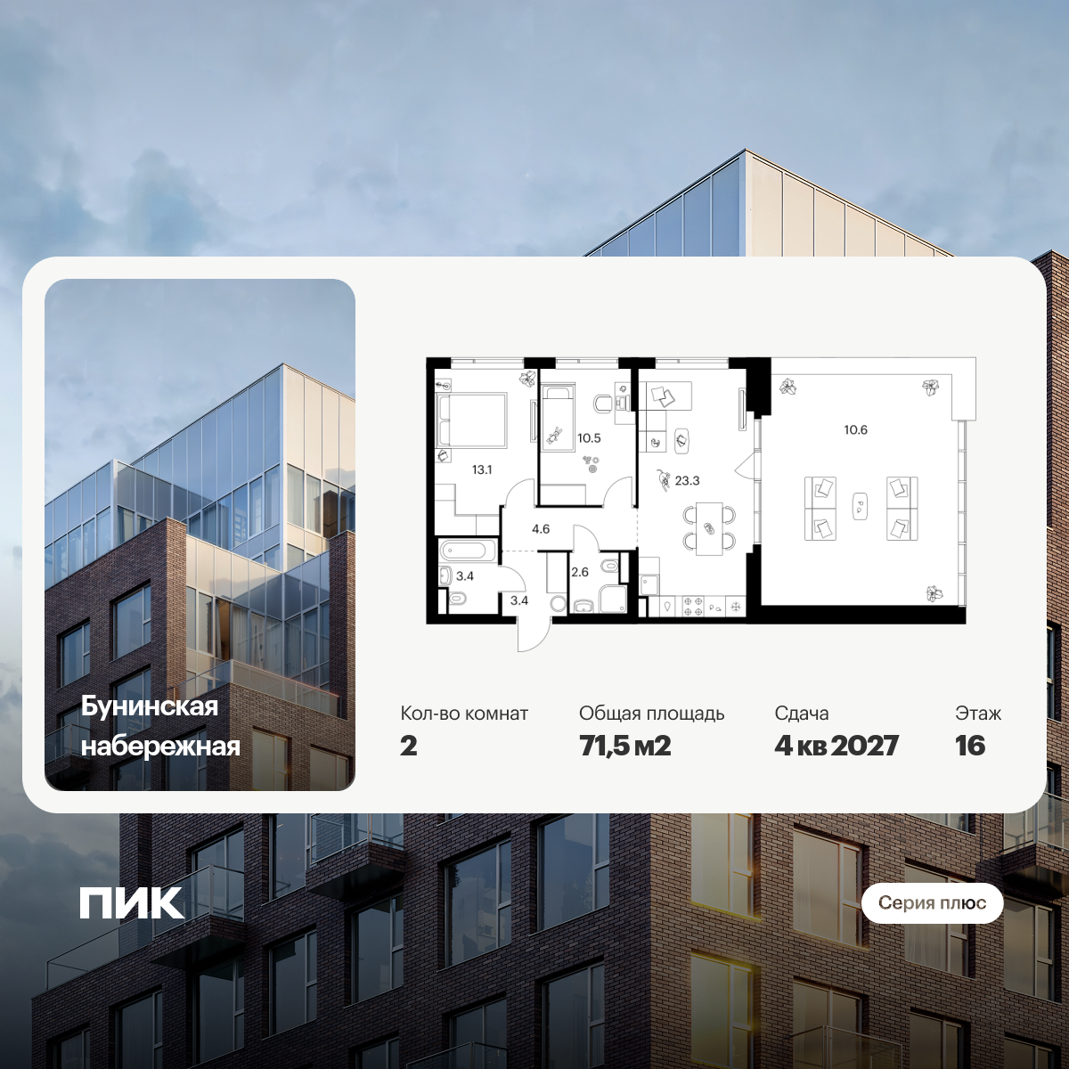 Продаётся 2-комн.квартира площадью 69.00 кв.м на 17 этаже 43 этажного дома (Корпус 1.1, секция 1) проекта ПИК 2-й Иртышский. Светлый просторный подъезд на уровне земли, функциональная планировка, большие окна, с отделкой.