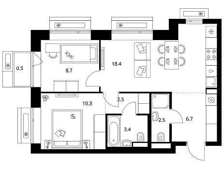 В корпусах 4.2-4.5 открытые балконы разнообразных форм: прямоугольные, фигурные. Все балконы выходят в тихий внутренний двор-парк. В эркерной части обоих корпусов предусмотрены лоджии.