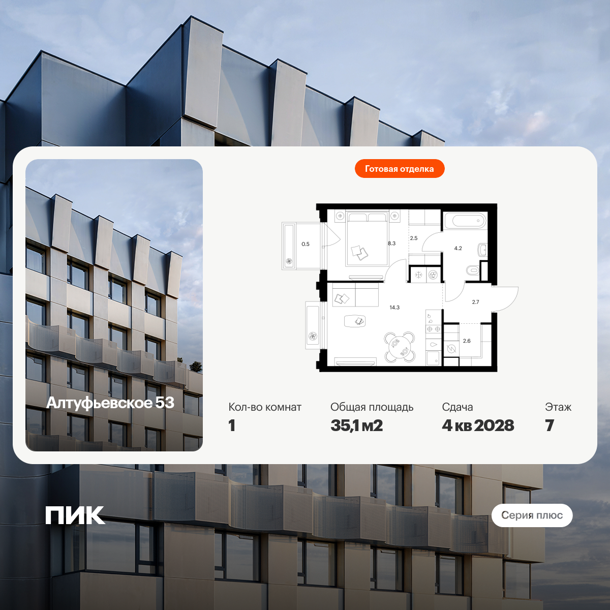 Архитектурную концепцию корпусов «Серии плюс» разработала российское бюро КК. У каждого здания свой характер за счёт уникальной формы и рельефа фасадов. А разноуровневые завершения башен создают выразительные силуэты.