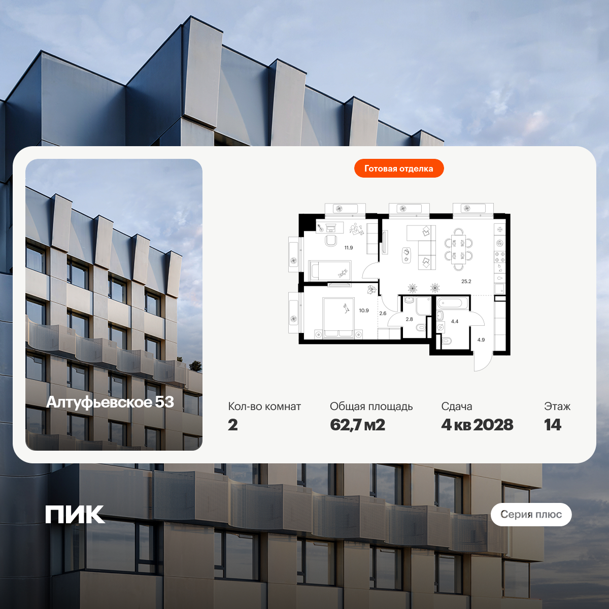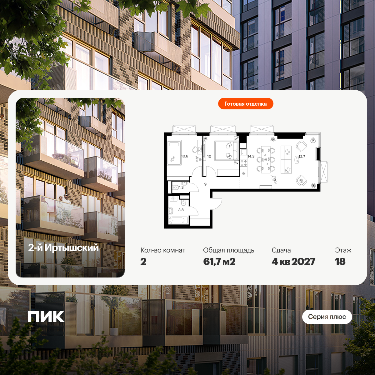 Архитектурную концепцию корпусов «Серии плюс» разработала российское бюро КК. У каждого здания свой характер за счёт уникальной формы и рельефа фасадов. А разноуровневые завершения башен создают выразительные силуэты.