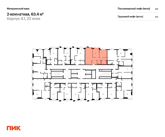 Продаётся 2-комн.квартира площадью 63.40 кв.м на 22 этаже 32 этажного дома (Корпус 4.1, секция 1) проекта ПИК Мичуринский парк. Светлый просторный подъезд на уровне земли, функциональная планировка, большие окна, с отделкой.