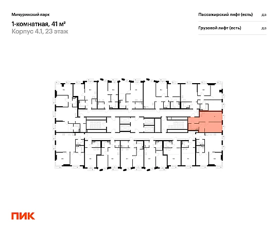 Продаётся 1-комн.квартира площадью 41.00 кв.м на 23 этаже 32 этажного дома (Корпус 4.1, секция 1) проекта ПИК Мичуринский парк. Светлый просторный подъезд на уровне земли, функциональная планировка, большие окна, с отделкой.