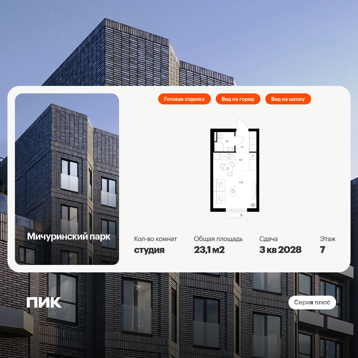 Купить квартиру студию 23 м² в ЖК Мичуринский парк