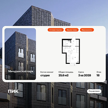 Купить квартиру студию 25 м² в ЖК Мичуринский парк