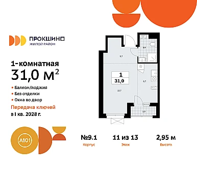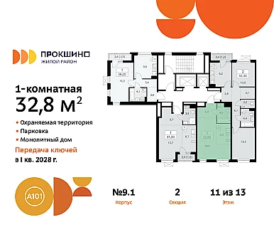 Продаётся квартира-студия площадью 25.60 кв.м на 18 этаже 32 этажного дома (Корпус 4.1, секция 1) проекта ПИК Мичуринский парк. Светлый просторный подъезд на уровне земли, функциональная планировка, большие окна, с отделкой.
