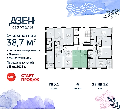 Купить 1к квартиру 36 м² в ЖК Мичуринский парк