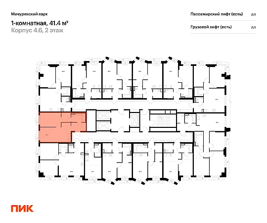 Продаётся 1-комн.квартира площадью 41.40 кв.м на 2 этаже 23 этажного дома (Корпус 4.6, секция 2) проекта ПИК Мичуринский парк. Светлый просторный подъезд на уровне земли, функциональная планировка, большие окна, с отделкой.