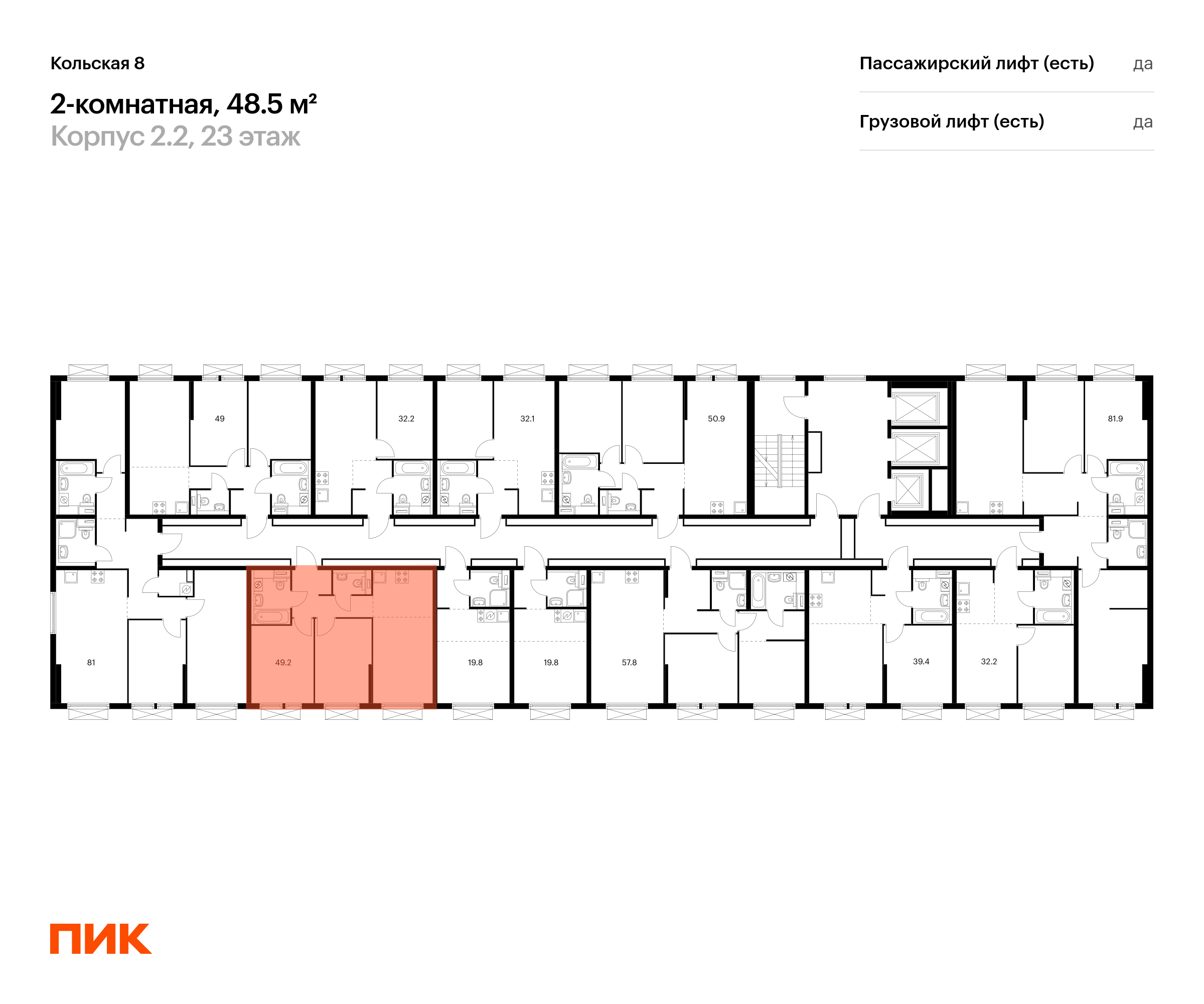 Продаётся 2-комн.квартира площадью 48.50 кв.м на 22 этаже 24 этажного дома (Корпус 2.2, секция 5) проекта ПИК Кольская 8. Светлый просторный подъезд на уровне земли, функциональная планировка, большие окна, с отделкой.