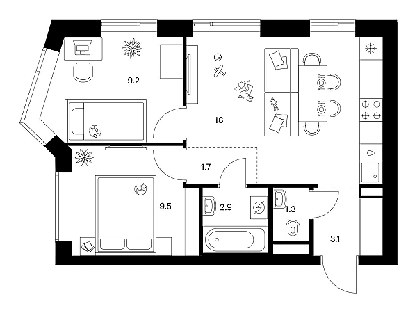 Купить 2к квартиру 45 м² в Мичуринский парк
