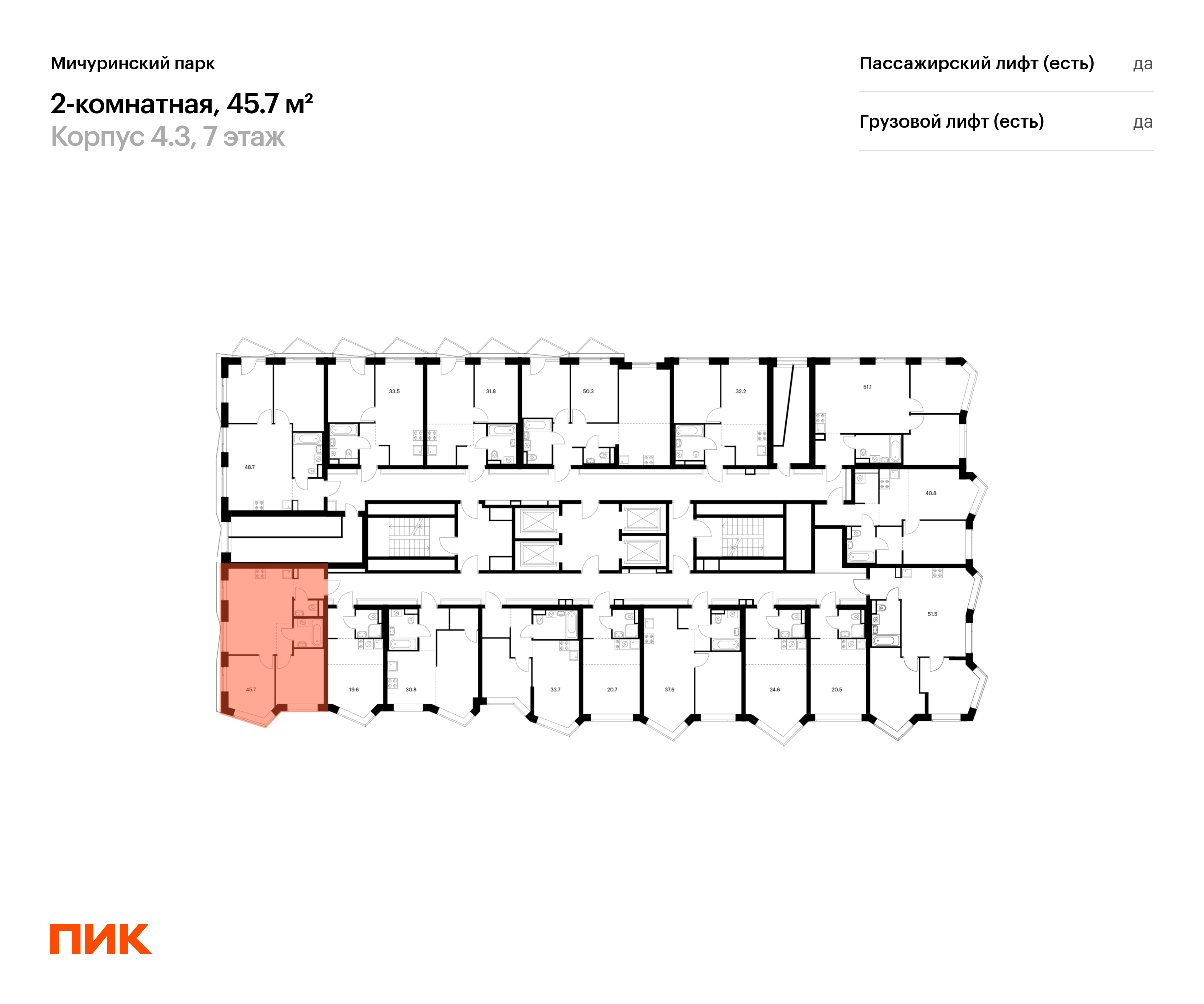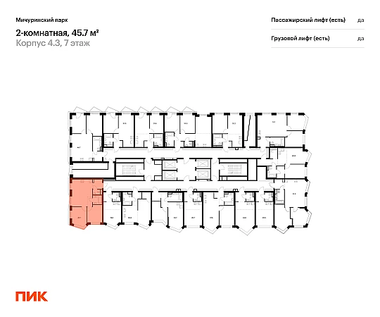 Продаётся 2-комн.квартира площадью 45.70 кв.м на 7 этаже 31 этажного дома (Корпус 4.3, секция 2) проекта ПИК Мичуринский парк. Светлый просторный подъезд на уровне земли, функциональная планировка, большие окна, с отделкой.