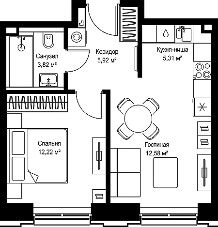 Купить 1к квартиру 34 м² в ЖК Среда на Кутузовском