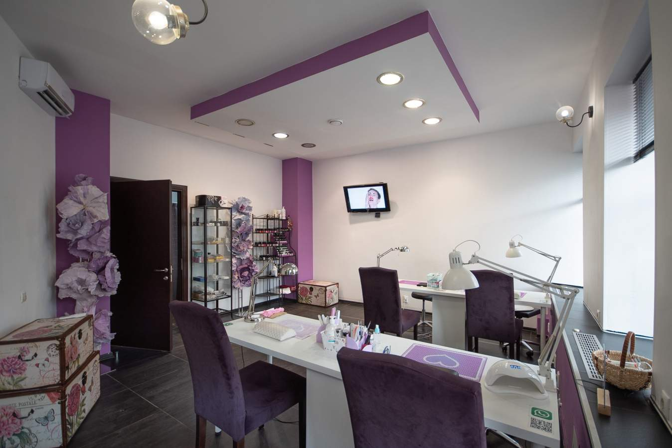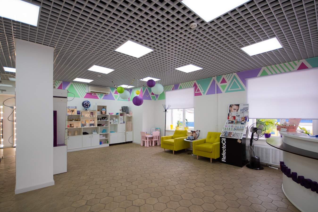Отделка: стены - стеклообои, окрашены водоэмульсионной краской; потолок - подвесной типа "Армстронг"; пол - линолеум.