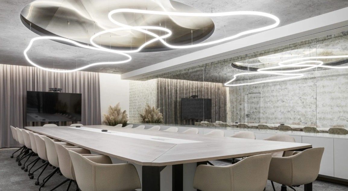 На этаже есть как отдельные кабинеты, так и открытое пространство. Так же есть гардеробная, зона ресепшн и отдыха, сан.узлы, переговорные комнаты, выделенная обеденная зона и кухня.