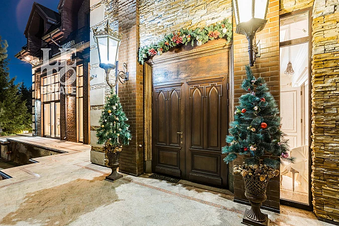 Первый этаж: холл, гардеробная, гостевой санузел, кабинет, спальня со своей гардеробной и ванной комнатой, каминный зал, гостиная-столовая с выходом на террасу, кухня, SPA-зона: бассейн, хаммам, душевые, санузел.