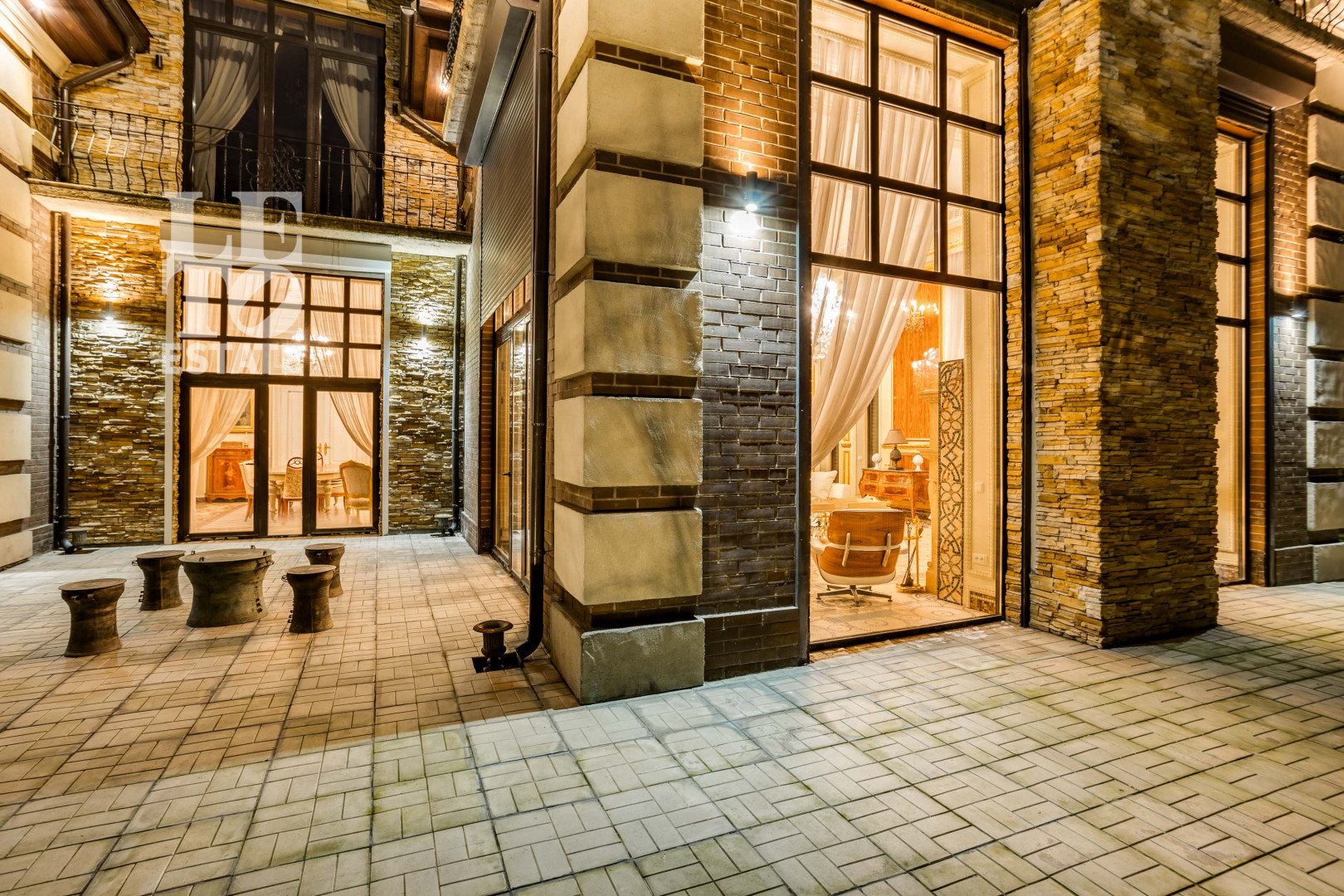 Второй этаж: холл, мастер-спальня с гардеробной и ванной комнатами, балкон, библиотека, кабинет, 3 спальни, каждая со своей гардеробной и ванной комнатами.