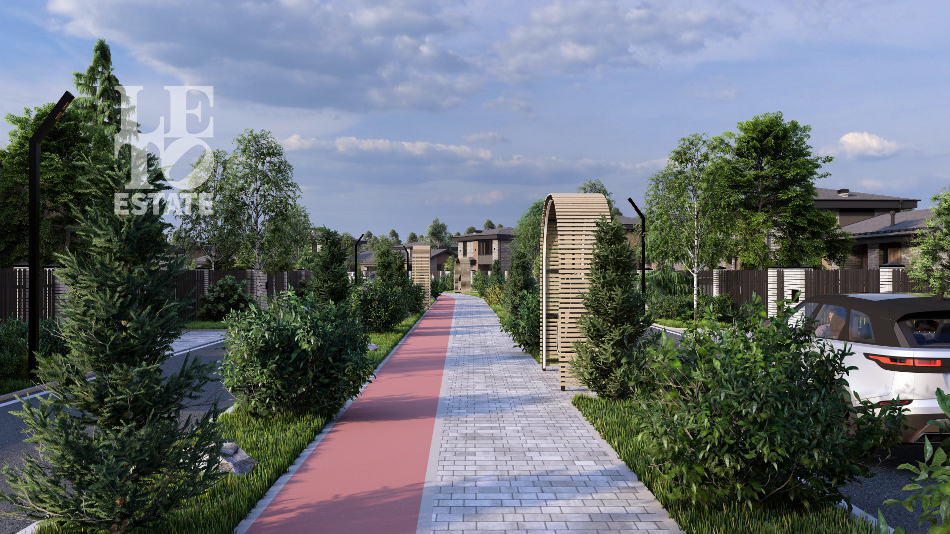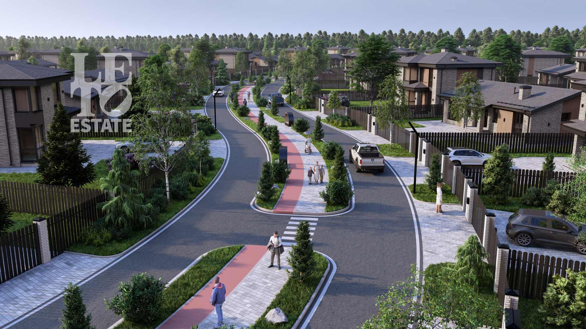 Все дома в поселке спроектированы в едином лаконичном стиле архитектурным бюро Антона Петаниди и гармонично вписаны в природный ландшафт. По всей территории посёлка растут деревья, кустарники и газонная трава. За зеленью следят садовники, чтобы она всегда радовала глаз. Для прогулок есть мощёные тротуары шириной до 2 метров, а для отдыха — удобные скамейки.
