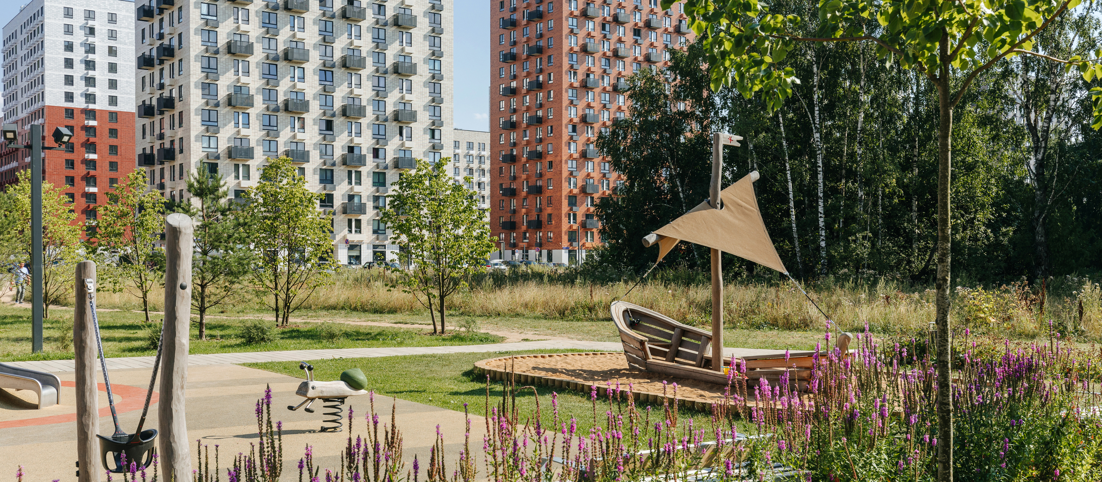 Все корпуса в квартале гармонично сочетаются, образуя единую городскую среду. Здесь приятно гулять и проводить время на улице всей семьёй.