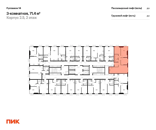 Продаётся 3-комн.квартира площадью 71.40 кв.м на 2 этаже 33 этажного дома (Корпус 2.5, секция 1) проекта ПИК Руставели 14. Светлый просторный подъезд на уровне земли, функциональная планировка, большие окна, с отделкой.