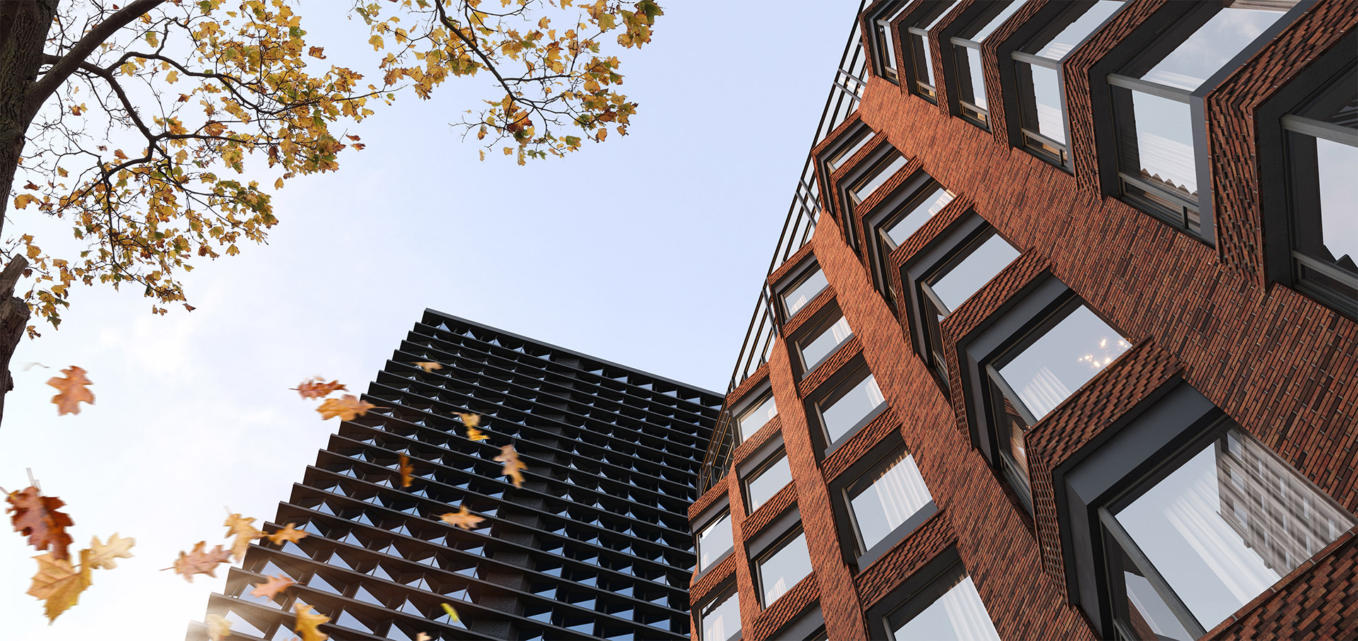 Архитектурная концепция от бюро «ХАДА-АРХИТЕКТС» объединяет в проекте акцентные высотные корпуса и малоэтажные здания. Квартал выделяется за счёт узнаваемого силуэта фасадов с цветовыми акцентами и продуманных внутренних пространств.