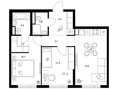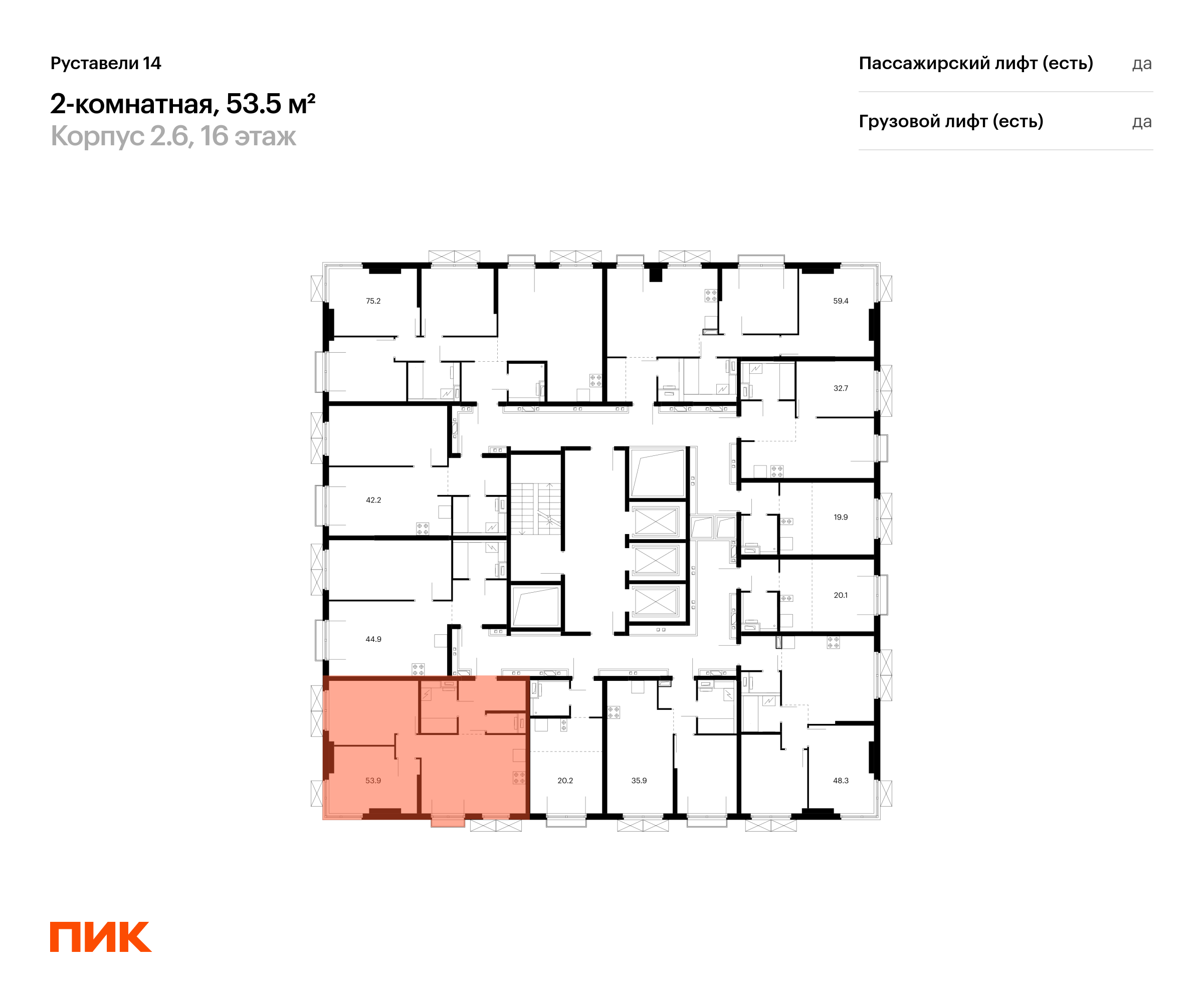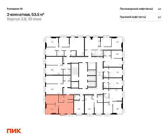 Продаётся 2-комн.квартира площадью 53.50 кв.м на 16 этаже 23 этажного дома (Корпус 2.6, секция 2) проекта ПИК Руставели 14. Светлый просторный подъезд на уровне земли, функциональная планировка, большие окна, с отделкой.