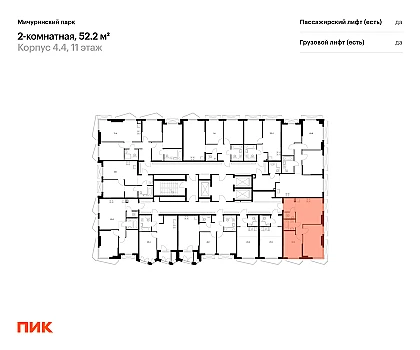 Купить 2к квартиру 53 м² в ЖК Руставели 14
