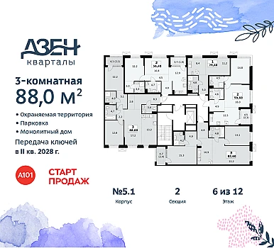 Продаётся 3-комн.квартира площадью 74.70 кв.м на 23 этаже 23 этажного дома (Корпус 2.6, секция 2) проекта ПИК Руставели 14. Светлый просторный подъезд на уровне земли, функциональная планировка, большие окна, с отделкой.