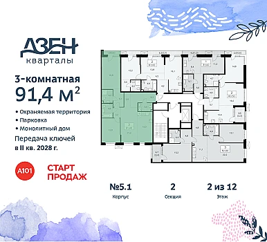 Купить 3к квартиру 74 м² в ЖК Руставели 14