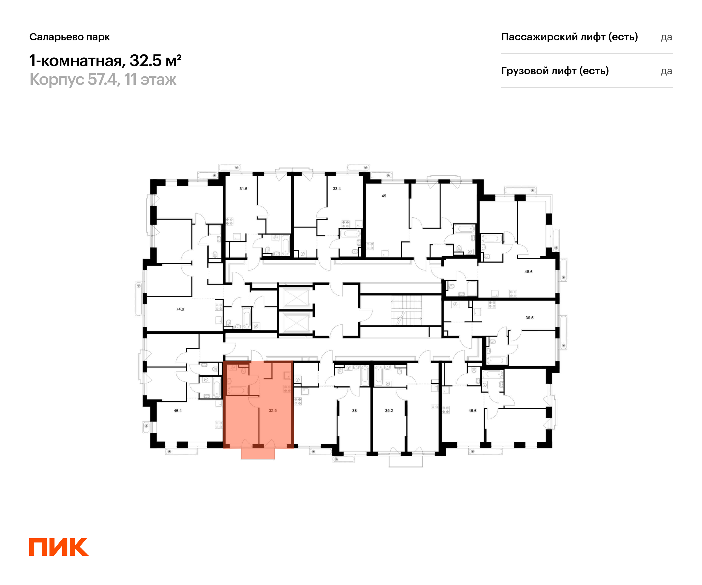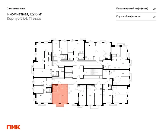 Продаётся 1-комн.квартира площадью 32.50 кв.м на 11 этаже 16 этажного дома (Корпус 57.4, секция 4) проекта ПИК Саларьево парк. Светлый просторный подъезд на уровне земли, функциональная планировка, большие окна, с отделкой.