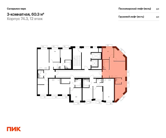 Продаётся 3-комн.квартира площадью 60.30 кв.м на 12 этаже 14 этажного дома (Корпус 74.3, секция 3) проекта ПИК Саларьево парк. Светлый просторный подъезд на уровне земли, функциональная планировка, большие окна, с отделкой.