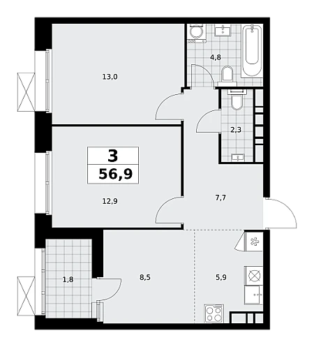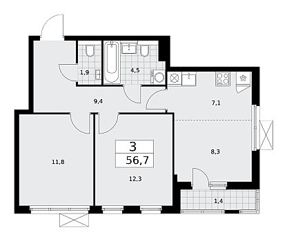 Купить 2к квартиру 51 м² в ЖК "Скандинавия"