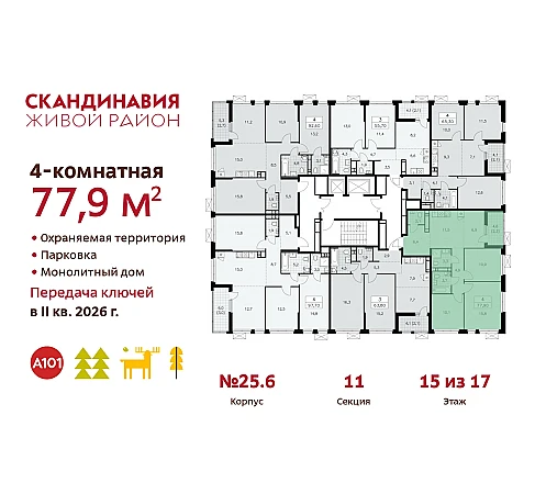 Квартира находится в корпусе 2.25.6. Дом монолитный, одноподъездный, высотой 17 этажей. На этаже 6 квартир. В подъезде 1 пассажирский и 1 грузовой лифт. Начало строительства - 4 квартал 2023 года. Окончание строительства - 2 квартал 2026 года. Оформление сделки по договору долевого участия.