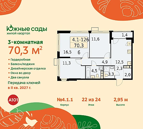 Артикул квартиры по базе застройщика 99К-4.1.1-126.