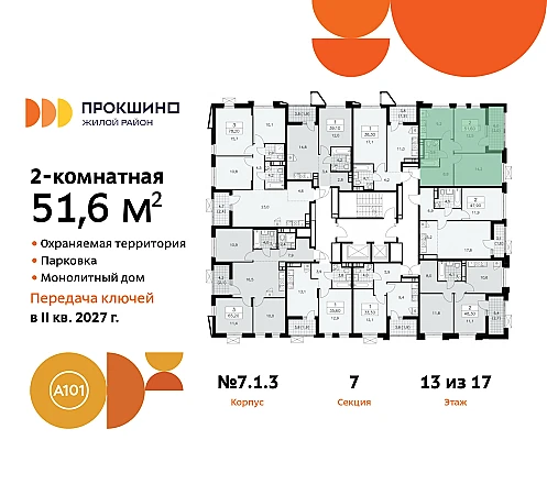 Квартира находится в корпусе 7.1.3. Дом монолитный, одноподъездный, высотой 17 этажей. На этаже 9 квартир. В подъезде 1 пассажирский и 1 грузовой лифт. Начало строительства - 4 квартал 2024 года. Окончание строительства - 2 квартал 2027 года. Оформление сделки по договору долевого участия.