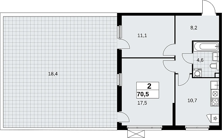 Двухкомнатная квартира в ЖК "Дзен-кварталы" на 2 этаже. Квартира без отделки, новый владелец может сделать ремонт по своему проекту. Общая площадь: 70.5 кв.м. Наличие террасы в квартире открывает возможность для создания зон отдыха в кругу семьи и друзей. Высота потолков 2.8 м.