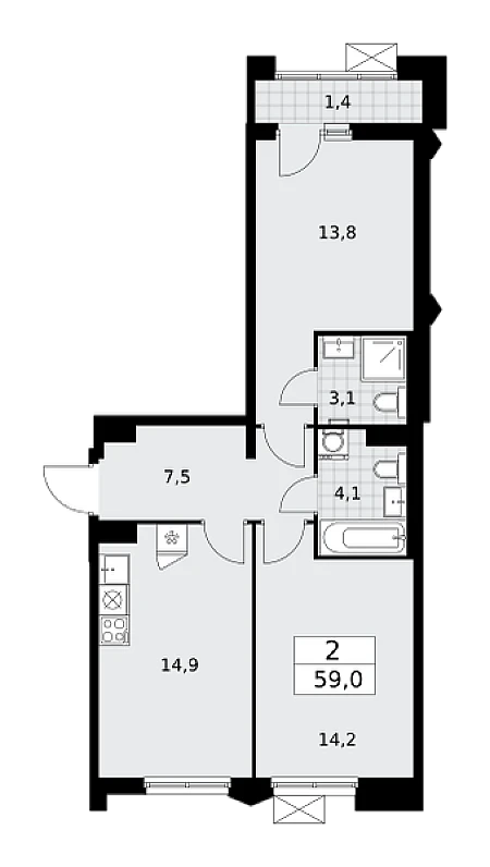 Купить 2к квартиру 70 м² в ЖК "Дзен-кварталы"