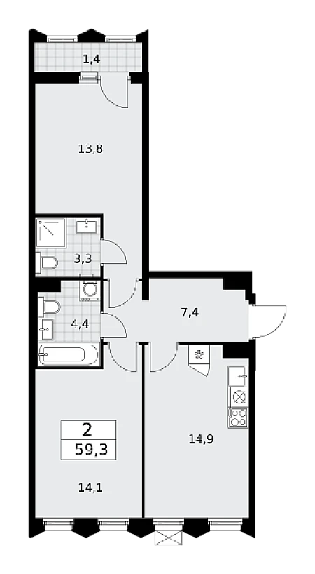 Эта квартира предлагается без отделки. Будут установлены стеклопакеты с повышенной тепло- и шумоизоляцией, в квартиру заведены все коммуникации. Вы сможете в полном объеме реализовать ваши идеи обустройства вашего комфортного дома.