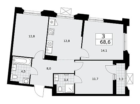 Однокомнатная квартира с отделкой в ЖК "Дзен-кварталы" на 2 этаже. Общая площадь: 49.3 кв.м., жилая: 14.9 кв.м., площадь просторной кухни-столовой: 15.6 кв.м. Все окна выходят на одну сторону. В квартире один балкон, один совмещенный санузел. Наличие в квартире террасы открывает возможность для создания зон отдыха в кругу семьи и друзей. Высота потолков 2.8 м.