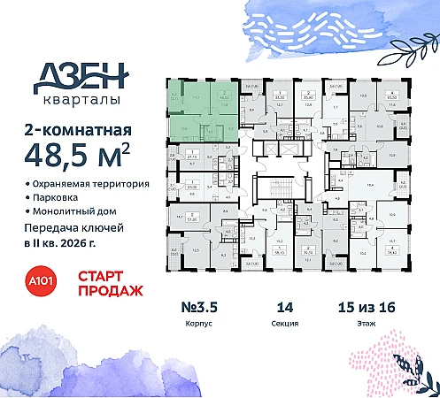 Купить 2к квартиру 48 м² в ЖК "Дзен-кварталы"
