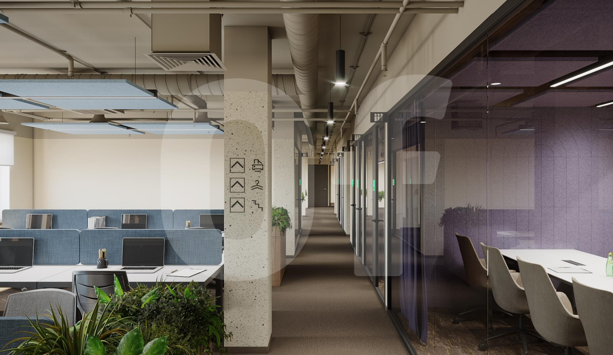 Разнообразные зоны для работы и отдыха: библиотека, event-пространство, переговорные комнаты, зоны для командной работы и тихие кабинеты, а также оборудованную комнату для ВКС. Для вашего комфорта предусмотрены welcome-зона, кофе-зона и хотдески.