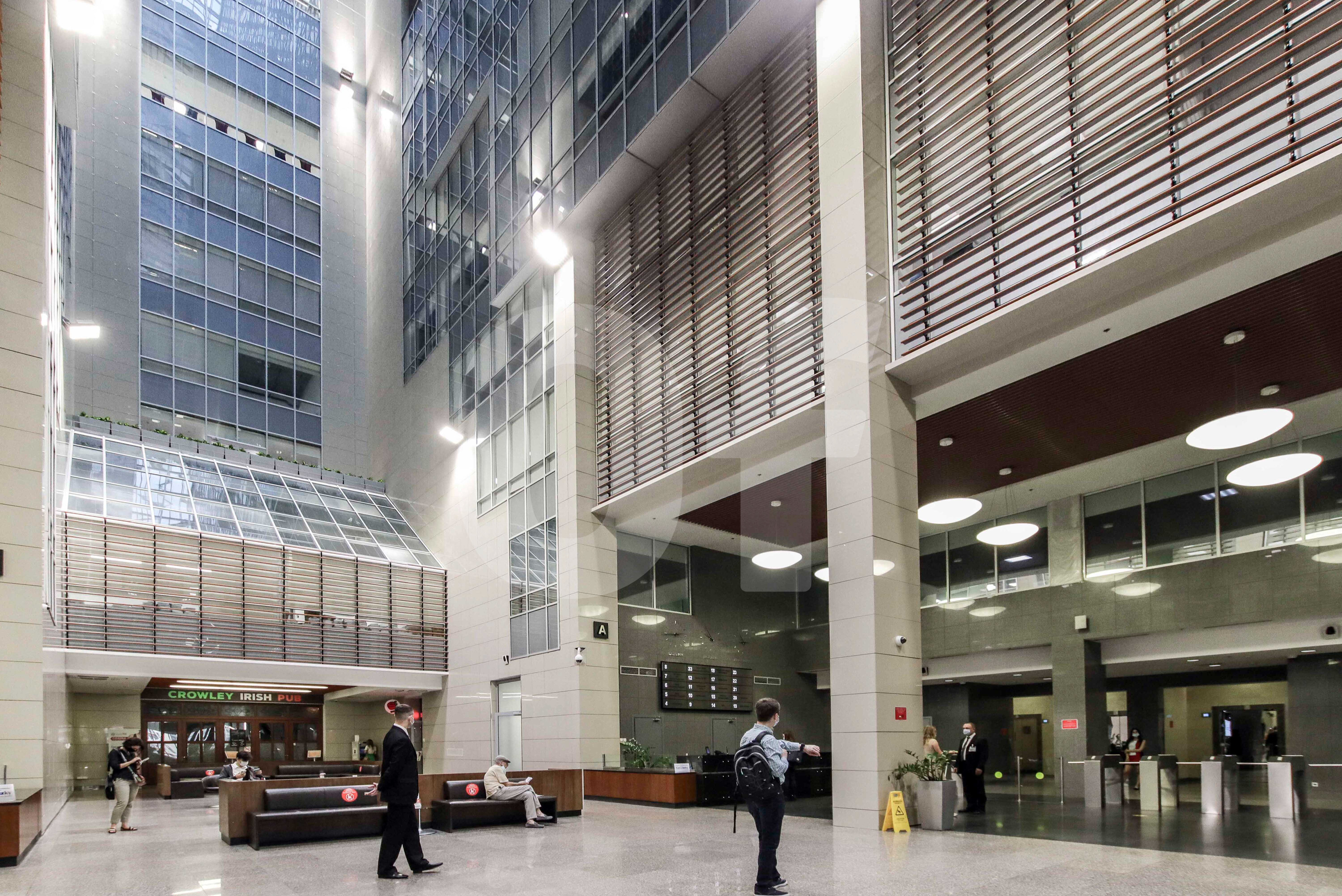 Предусмотрена подземная парковка на 1050 мест и наземная на 100. Инфраструктура бизнес-центра включает столовую, кафе, торговую галерею и отделение банка. Бизнес-центр оборудован современными инженерными системами и 15 пассажирскими лифтами. Юридические адреса обслуживаются в налоговой №18.