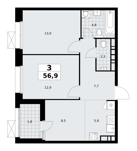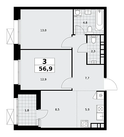 Продаётся 3-комнатная квартира, площадью 56,9 кв. м на 21-м этаже дома бизнес-класса в ЖК "Бунинские кварталы". Квартира с функциональной планировкой: большие окна, высота потолка 3,4 м, балкон.