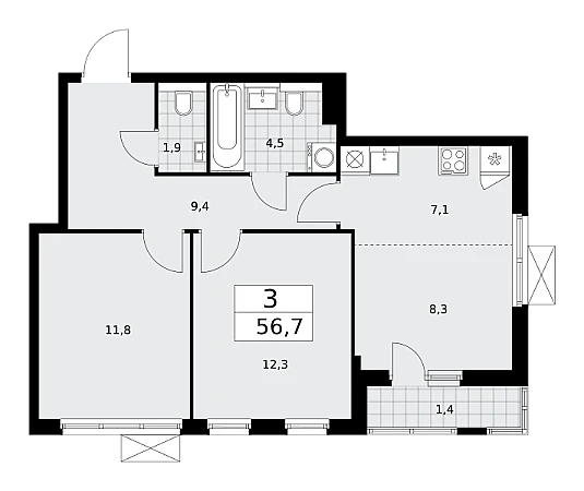 Продаётся 3-комнатная квартира, площадью 56,7 кв. м на 6-м этаже дома комфорт-класса в ЖК "Бунинские кварталы". Квартира с функциональной планировкой: большие окна, высота потолка 2,8 м, балкон.