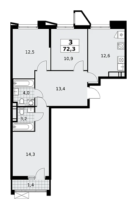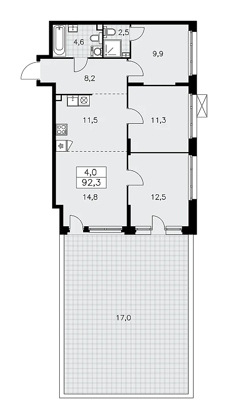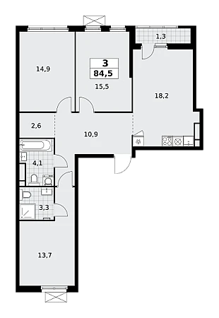 Продаётся 3-комнатная квартира, площадью 84,5 кв. м на 8-м этаже дома комфорт-класса в ЖК "Южные сады". Квартира с функциональной планировкой: большие окна, высота потолка 2,95 м, балкон, мастер-спальня.