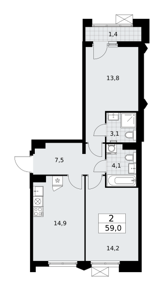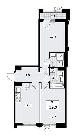 Продаётся 2-комнатная квартира, площадью 59,0 кв. м на 10-м этаже дома комфорт-класса в ЖК "Деснаречье". Квартира с функциональной планировкой: большие окна, высота потолка 2,95 м, балкон, мастер-спальня.