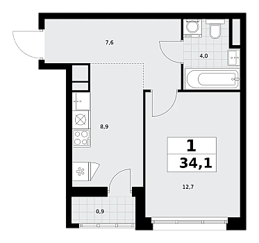 Однокомнатная квартира от застройщика в ЖК "Родные кварталы" на 8 этаже. Квартира без отделки, полностью готова к ремонту. Общая площадь: 35 кв.м., жилая: 12.5 кв.м., площадь просторной кухни-столовой: 12.4 кв.м. Все окна выходят на одну сторону. В квартире одна лоджия, один совмещенный санузел. Высота потолков 2.95 м.