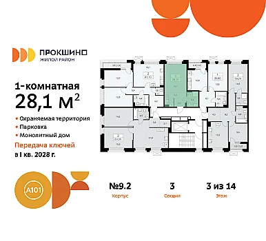 Дом монолитный, черырехподъездный, переменной этажности, от 9 до 17 этажей. Квартира находится в 4-й секции высотой 16 этажей в корпусе 7.3. На этаже 5 квартир. В подъезде 1 пассажирский и 1 грузовой лифт. Начало строительства - 2 квартал 2025 года. Окончание строительства - 1 квартал 2028 года. Оформление сделки по договору долевого участия.