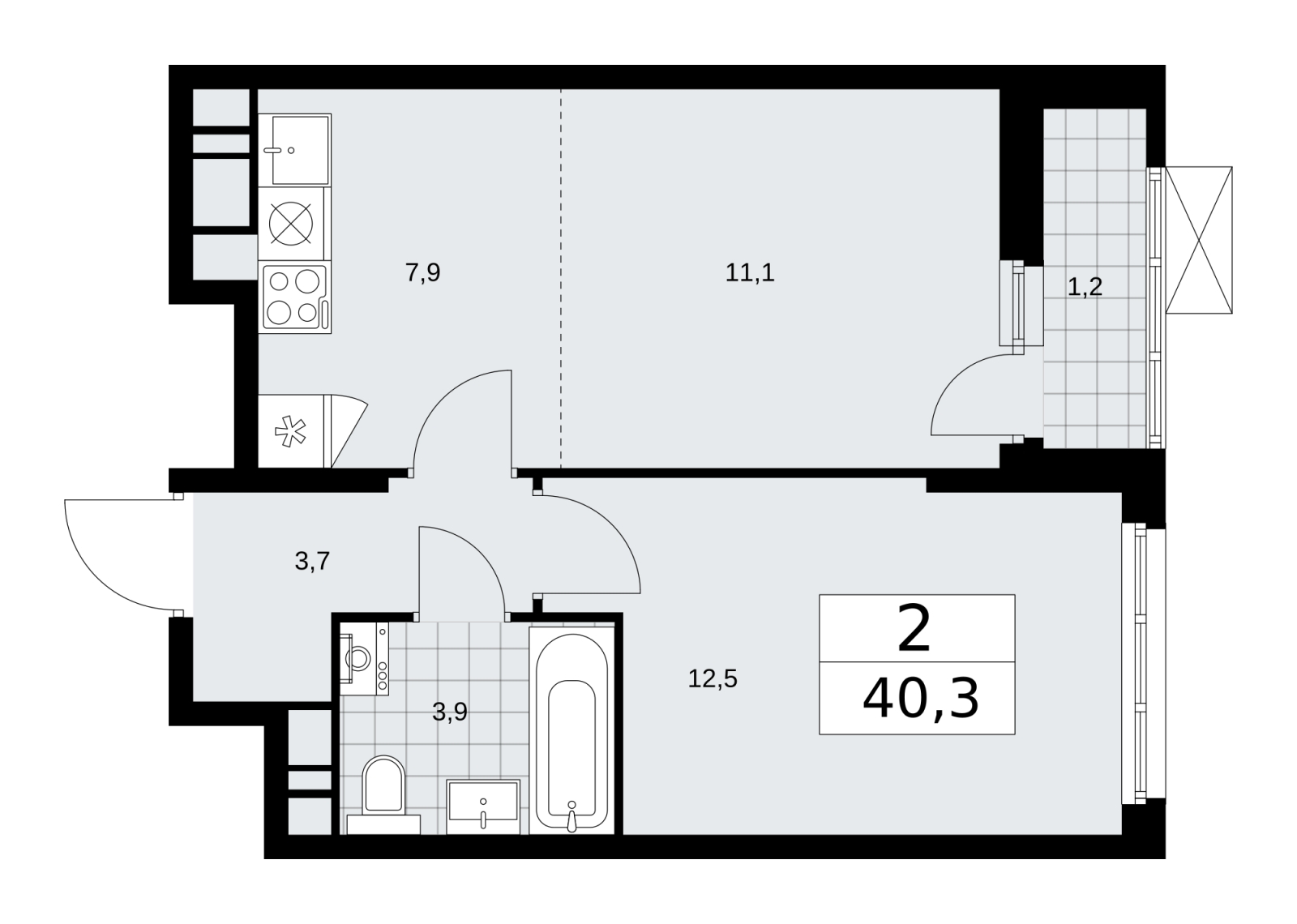 2-комн. квартира с европланировкой от застройщика в ЖК "Скандинавия" на 9 этаже. Квартира без отделки, новый собственник может сделать ремонт по индивидуальному проекту. Общая площадь: 40.3 кв.м., жилая: 23.6 кв.м., общая площадь гостиной-столовой с кухонной зоной: 19 кв.м. Европейская планировка, зона гостиной комнаты объединена с кухней. Комнаты изолированные, все окна выходят на одну сторону. В квартире одна лоджия, один совмещенный санузел. Высота потолков 2.95 м.