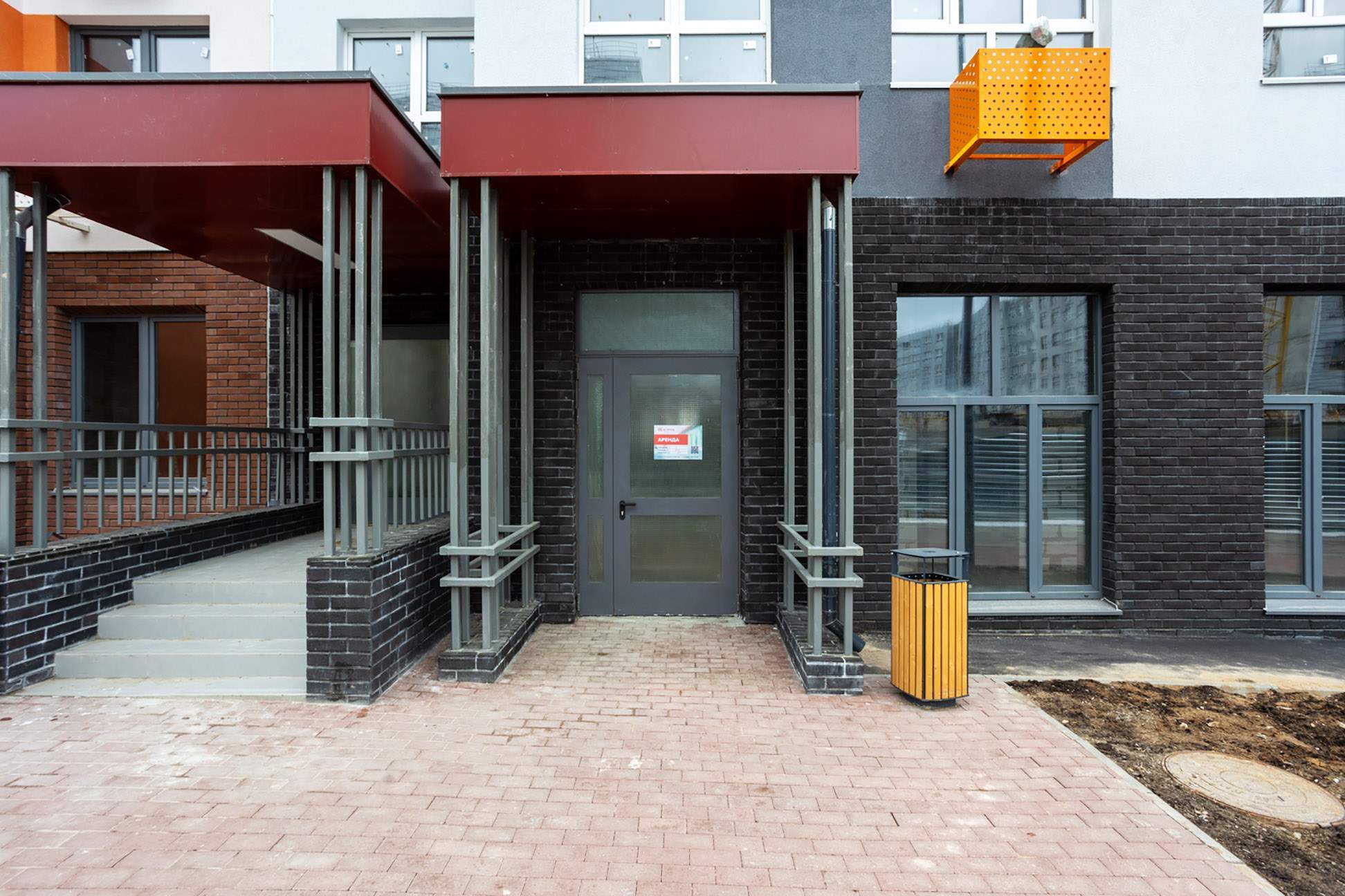 Отдельный вход и место под вывеску, что упрощает доступ клиентов и улучшает узнаваемость центра.