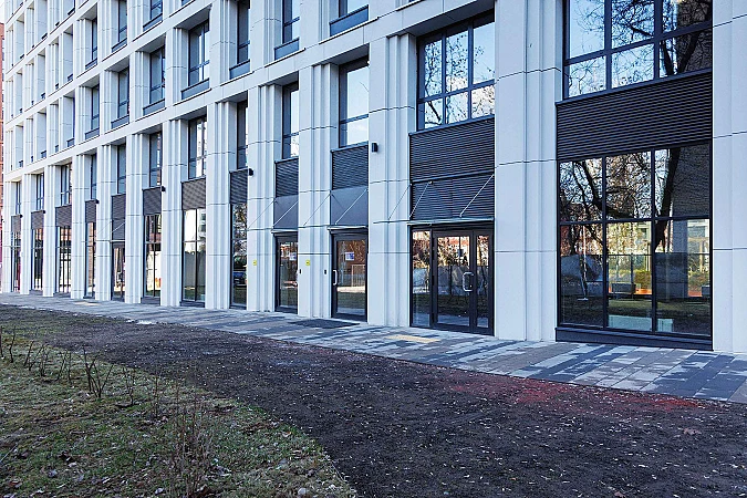 На первых этажах комплекса представлены коммерческие помещения площадью от 25 до 3143 кв. м. Каждое помещение имеет отдельный вход, витринное остекление и возможность гибкой планировки. Здесь можно открыть супермаркет, кафе, офис, магазин или предприятие сферы услуг. Высокий пешеходный и автомобильный трафик обеспечен благодаря расположению крупных вузов, деловых центров, парковых зон в ближайшей зоне охвата объекта.