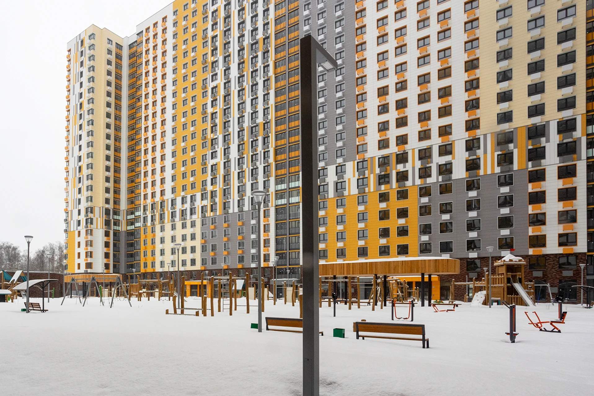 Шесть корпусов из одиннадцати уже введены в эксплуатацию. Жилой комплекс спроектирован с расчетом на то, что в домах будут проживать более 12 тысяч человек. На территории комплекса также разместятся детские сады, школа, поликлиники, собственный паркинг и другая инфраструктура.